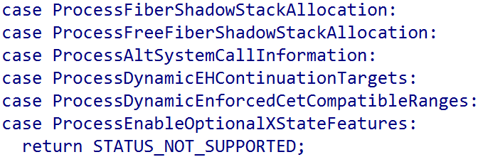 Additionally, likely as a side effect of Intel CET enablement on x86-based installations of Windows, the mitigation value CetDynamicApisOutOfProcOnly is also set unconditionally for every process except for the Idle process on Windows.
