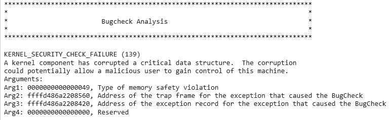 Shifting focus slightly, when a kernel-mode PAC violation, identical to the previous scenario, occurs, a KERNEL_SECURITY_CHECK_FAILURE ensues, with the type of memory safety violation being FAST_FAIL_POINTER_AUTH_INVALID_RETURN_ADDRESS.
