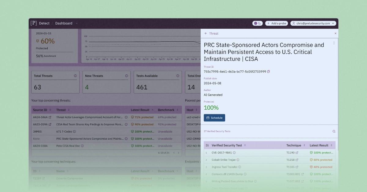 Put our insights to good use with a free trial of Prelude so you can validate the coverage, configuration, and efficacy of your security tools.